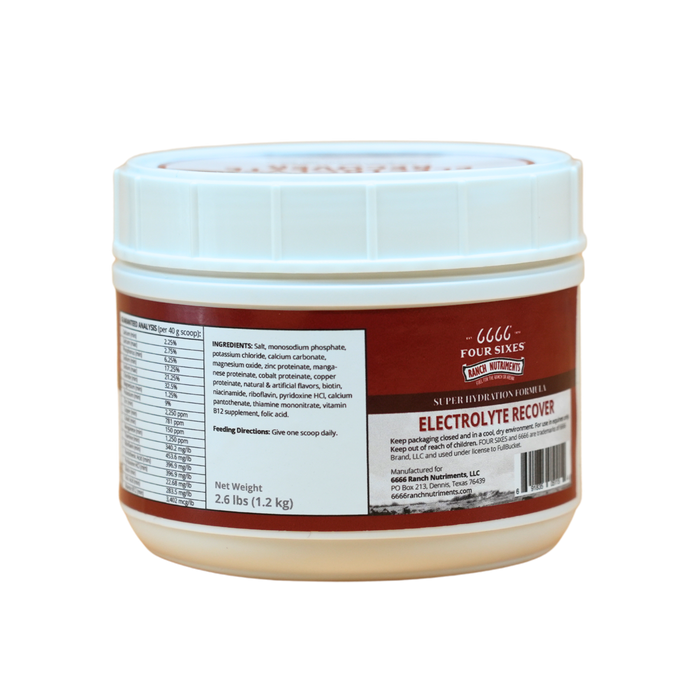 - Both of the Four Sixes Electrolyte products provide horses with the same balanced formulation. The powder is intended for daily top-dress on top of feed, and the paste is intended for convenient on-the-go electrolyte supplementation - for example, when shipping horses.