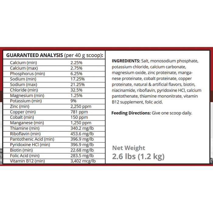 Healthy horses produce B vitamins in their large intestine (the electrolyte reservoir). However, in working horses, the large intestine is often unable to keep up with the body’s demand for B vitamins. For ease of supplementation, B vitamins have been added to our two electrolyte supplements, to better support hard working horses.